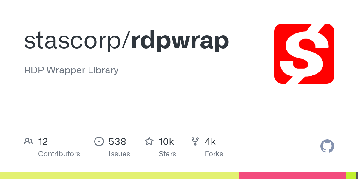 GitHub - stascorp/rdpwrap: RDP Wrapper Library