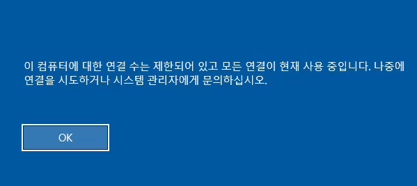 The number of connections to this computer is limited and all connections are in use right now. Try connecting later or contact your system administrator