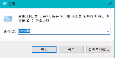 ์๋์ฐ + R ์ ๋์์ ๋๋ฌ ์คํ ์์์ "regedit"์ ์ ๋ ฅํ๋ฉด ๋ ์ง์คํธ๋ฆฌ ํธ์ง๊ธฐ๊ฐ ์ผ์ง๋ค.